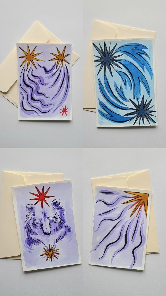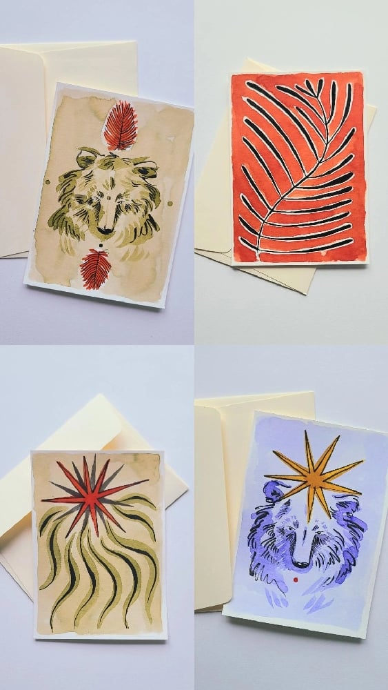 Carte 15,5 x 11cm crée à l'encre sur papier aquarelle 300gr., signée au dos, jointe à son enveloppe Clairefontaine crème. Le dos est neutre pour y inscrire votre message.